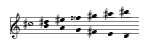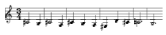 In this case, the fundamental key would be E-Dorian or E-Aeolian, because of the weight of the note E as the final note of the lower staff. The resulting 8-note scale (Ex. 4) is a synthetic one. It cannot be reduced to any combination of two diatonic scales, although both parts in themselves are purely diatonic. But if we accept a contradiction between what we hear and what we see, we can say that the tonal structure of the piece, as notated, is bitonal and consists of a diatonic mode on E and of another on Bb. Both parts are independent; they do not share a single note—a complementary relation not rare in Bartók’s music.